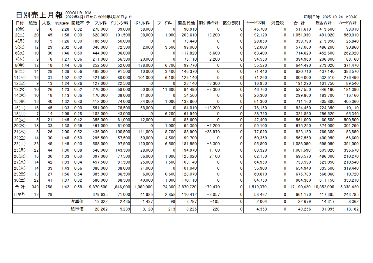 期間を指定して売上の詳細を日別に集計し一覧表示します。